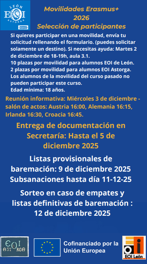 Sorteo movilidad Erasmus+ celebrado el 9 de diciembre 2025, desempates en el baremo: Primer apellido primera letra: Q, segunda letra: Q Segundo apellido primera letra: E, segunda letra: X